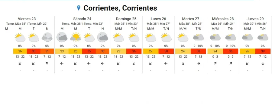 De acuerdo al pronóstico, se esperan temperaturas máximas que oscilarán entre los 36°C y 39°C en distintos puntos del territorio provincial, con una sensación térmica que podría ser considerablemente superior, especialmente durante las tardes.