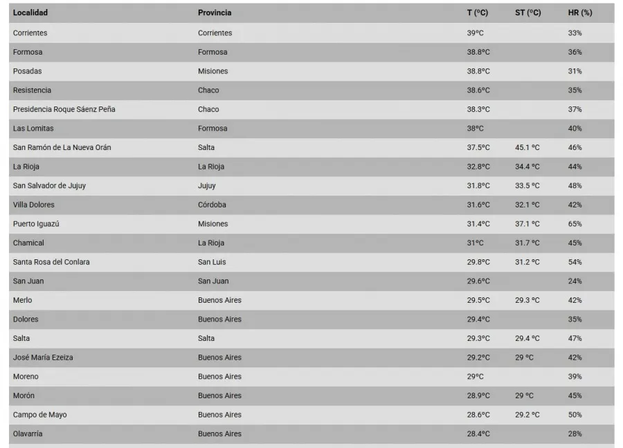 El informe oficial ubicó a la provincia en el primer lugar a nivel nacional en cuanto a marcas térmicas, en un contexto de altas temperaturas que afectan a distintas regiones del país.