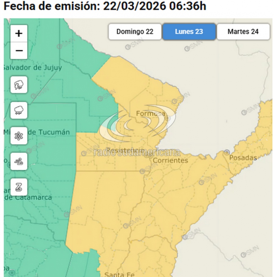 Para este día, se esperan lluvias fuertes por la mañana a tormentas aisladas el resto del día en la capital correntina. Asimismo, todo el territorio provincial continuará bajo alerta amarilla por lluvias que durarían más de 24 horas.