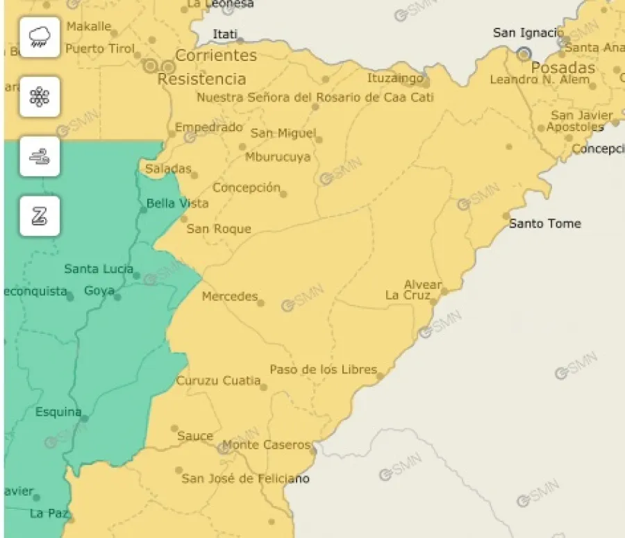 *Localidades afectadas: Berón de Astrada - Capital - Empedrado - General Paz - Itatí - Mburucuyá - Saladas - San Cosme - San Luis del Palmar - Concepción - Curuzú Cuatiá - Mercedes - San Roque - Sauce - Ituzaingó - San Miguel - General Alvear - Paso de los Libres - San Martín - Santo Tomé